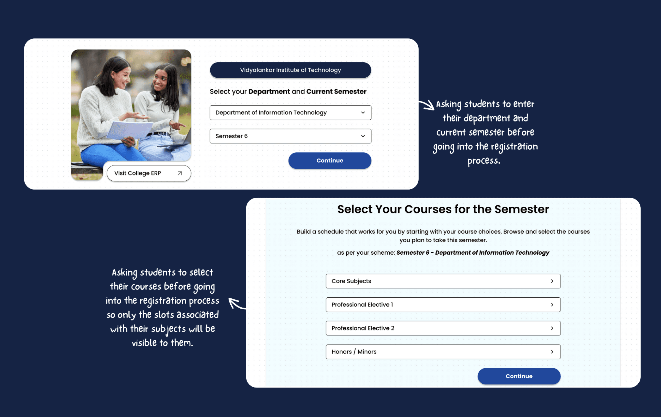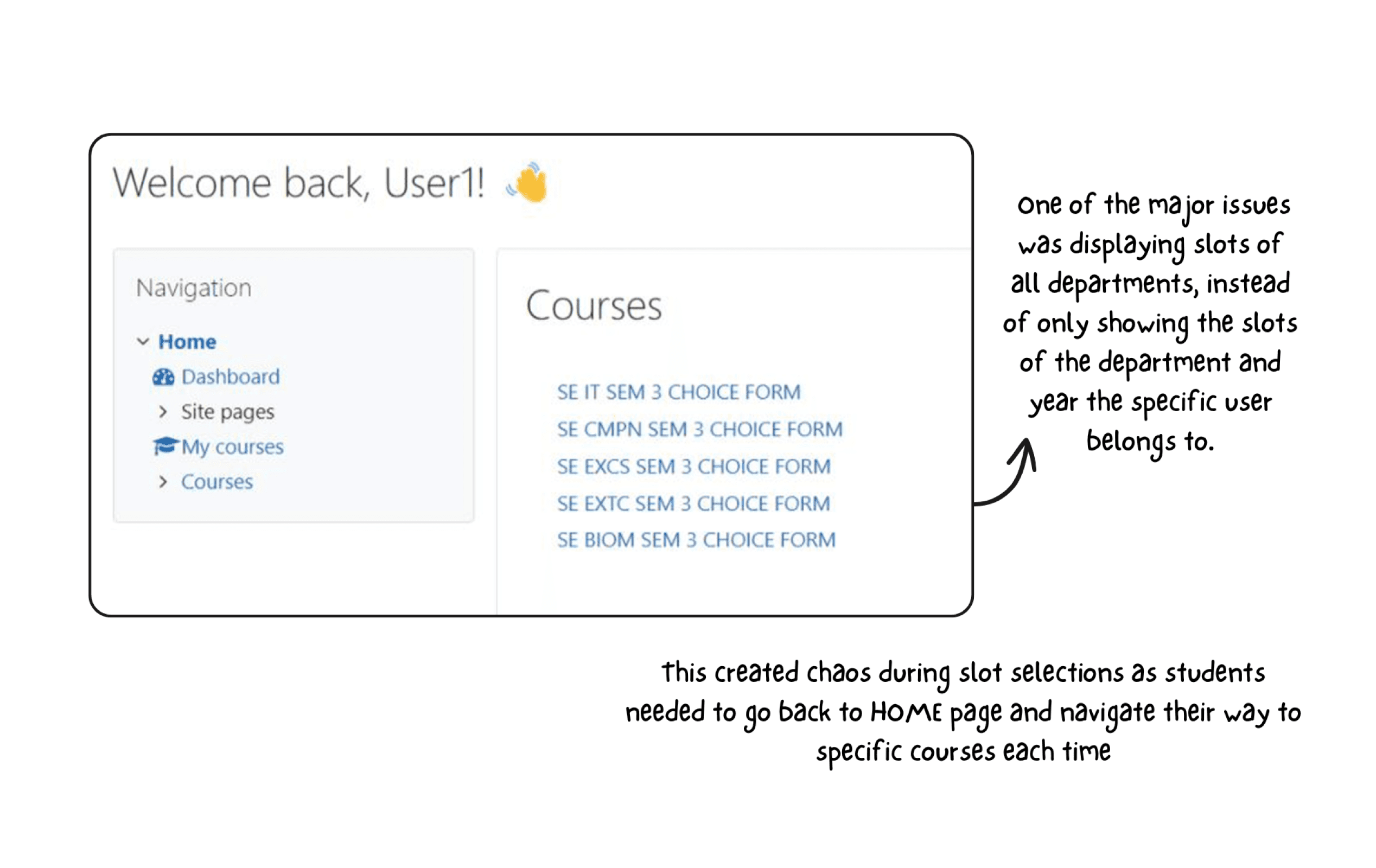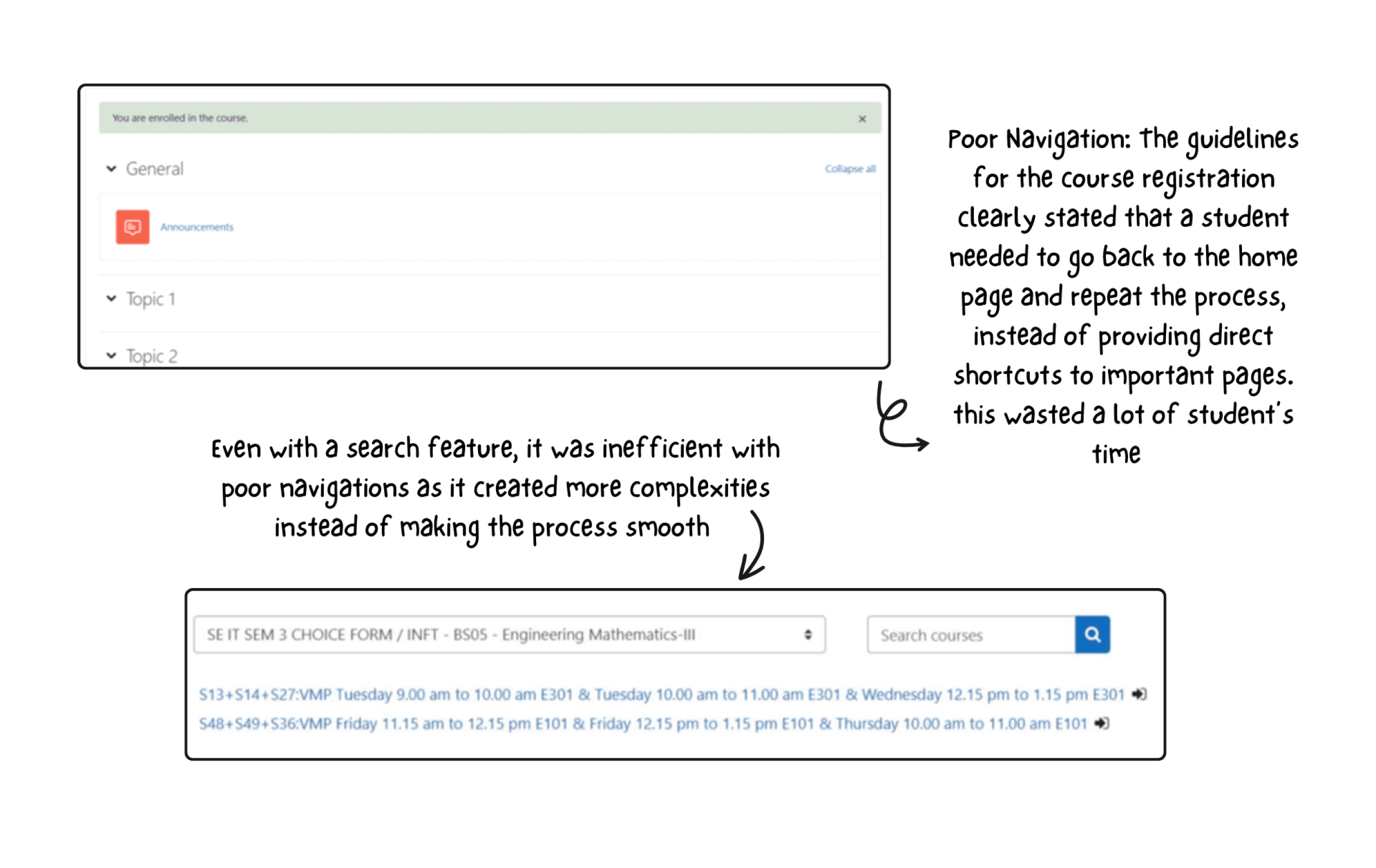 "It was difficult to effectively find the slot you were interested in, it was time consuming to map course code with course and while we do this the slot was full."