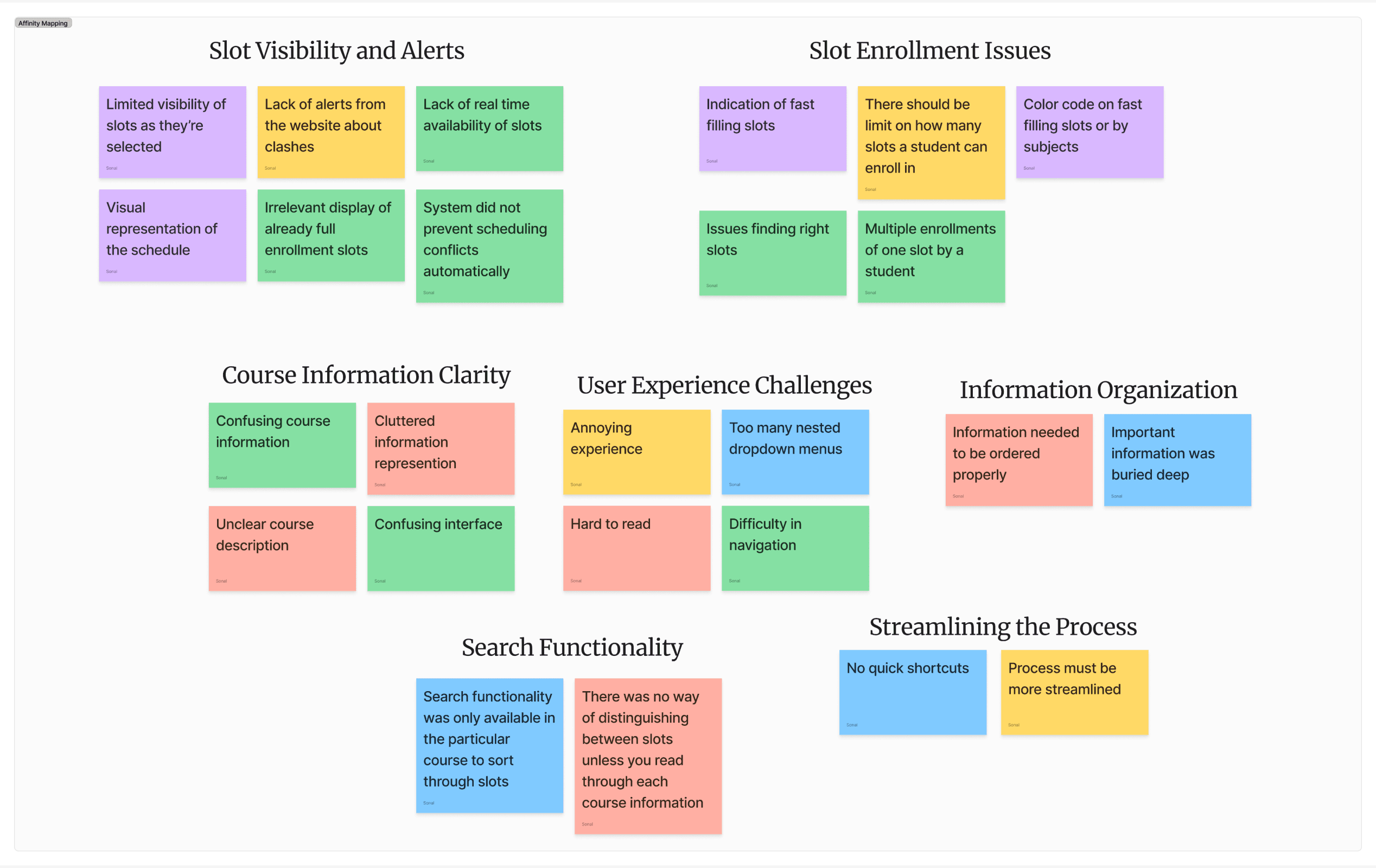 Organizing the notes, quotes, and data from my research through affinity mapping.