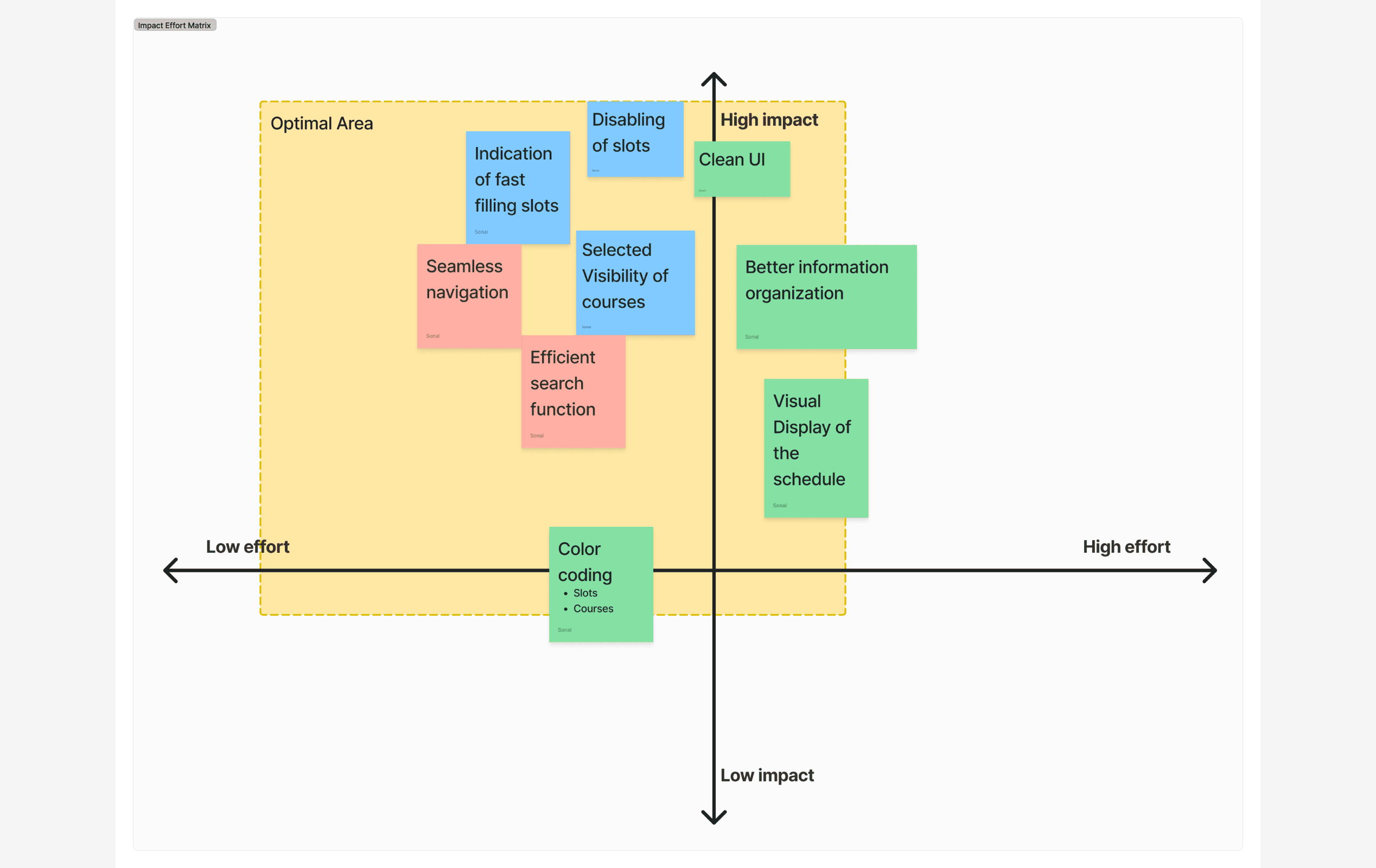 Prioritizing design work with Low/High Effort and Impact Matrix
