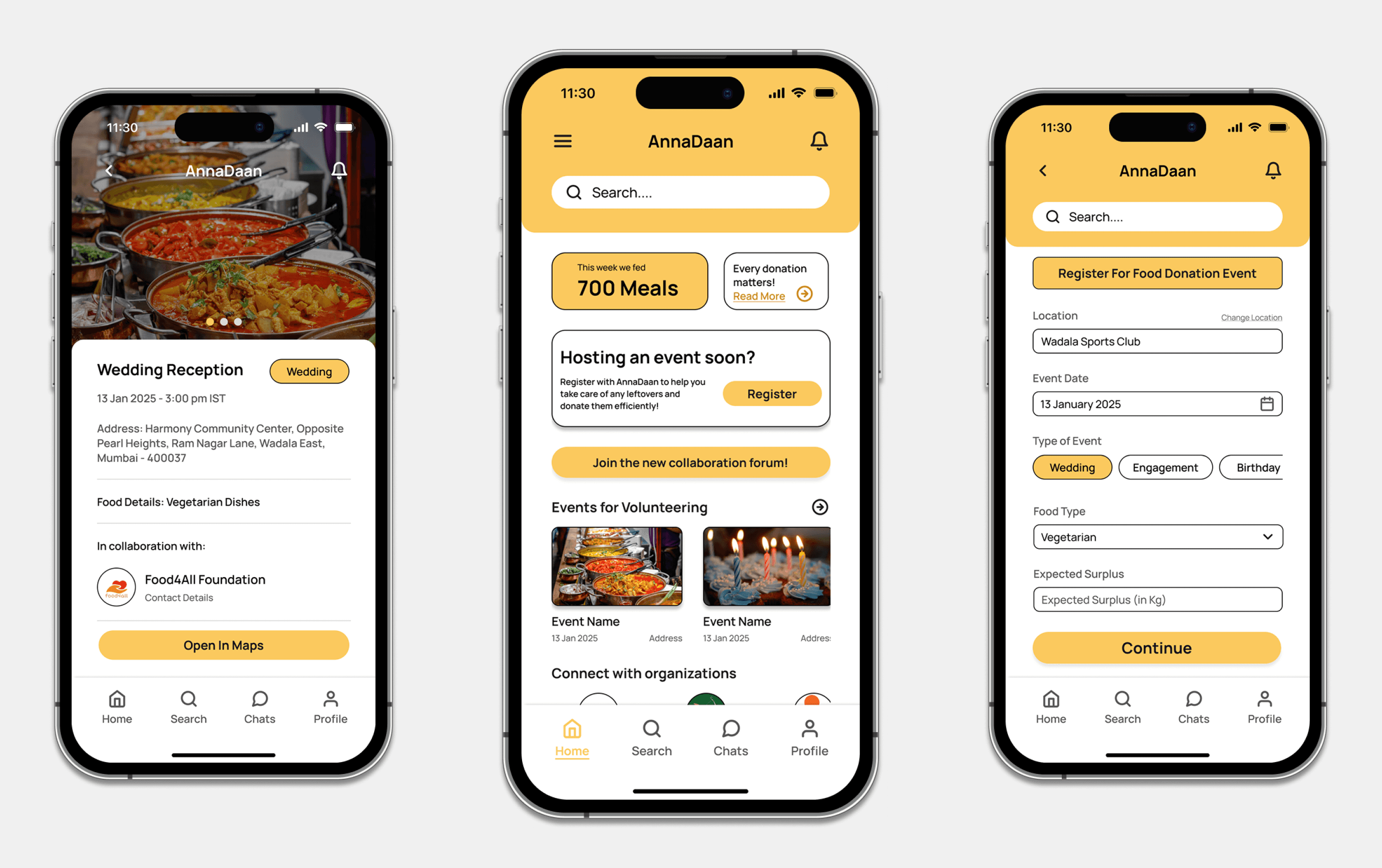 AnnaDaan, a mobile application that connects surplus food from restaurants and events with local NGOs and food banks.