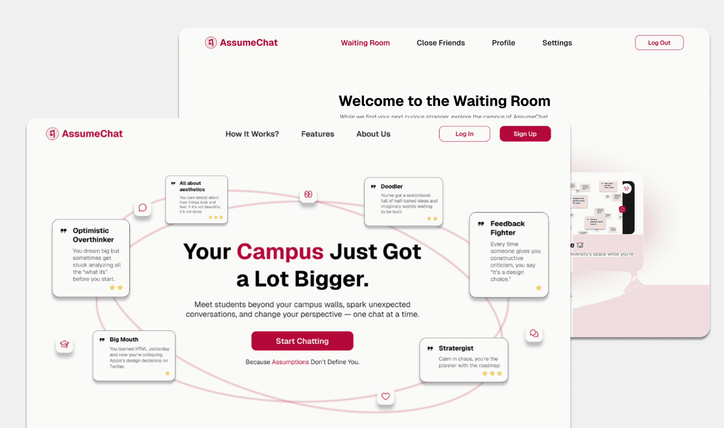 Assume Chat is a website exclusively for college students to chat, talk and discover other students. Basically Omegle for students but safe, fun and with lots of assumptions to defy.