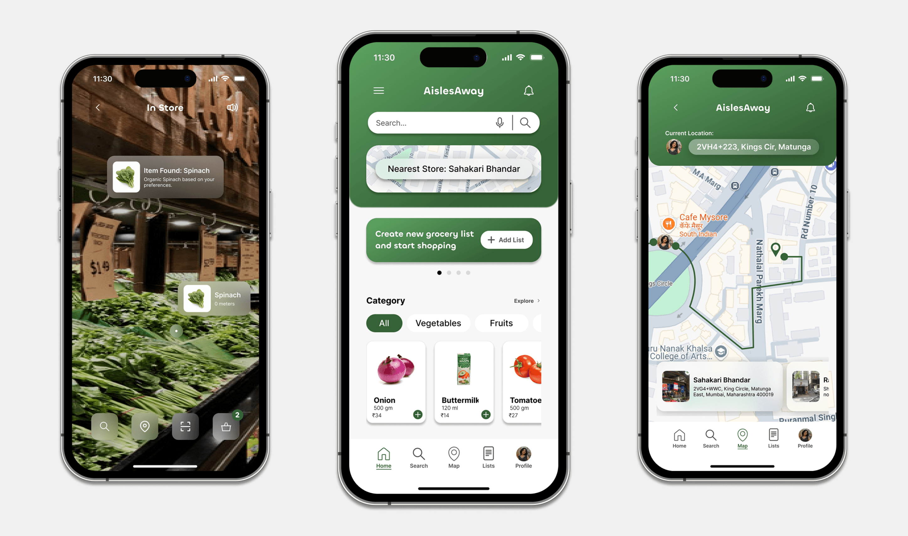 AislesAway, a grocery assistant app that helps users throughout their entire grocery journey from planning to checkout, making smarter shopping accessible to everyone.