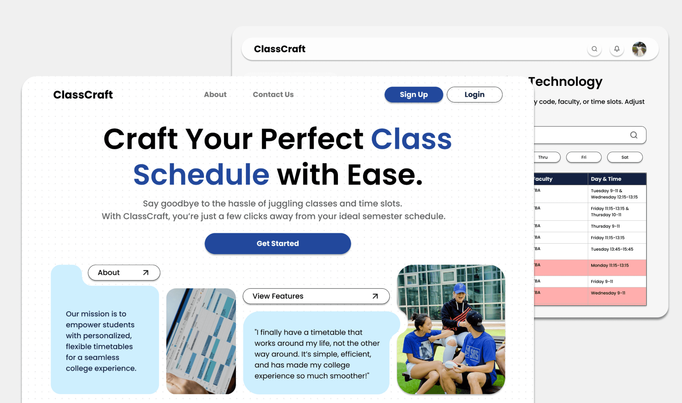 Redesign of a web platform that allows college students to customize and organize their semester timetables by selecting professors, timeslots, and subjects with ease.